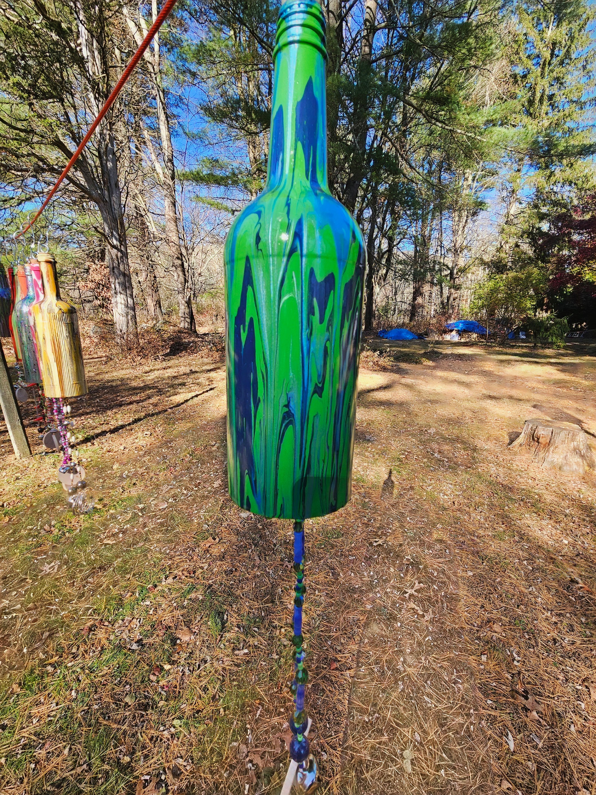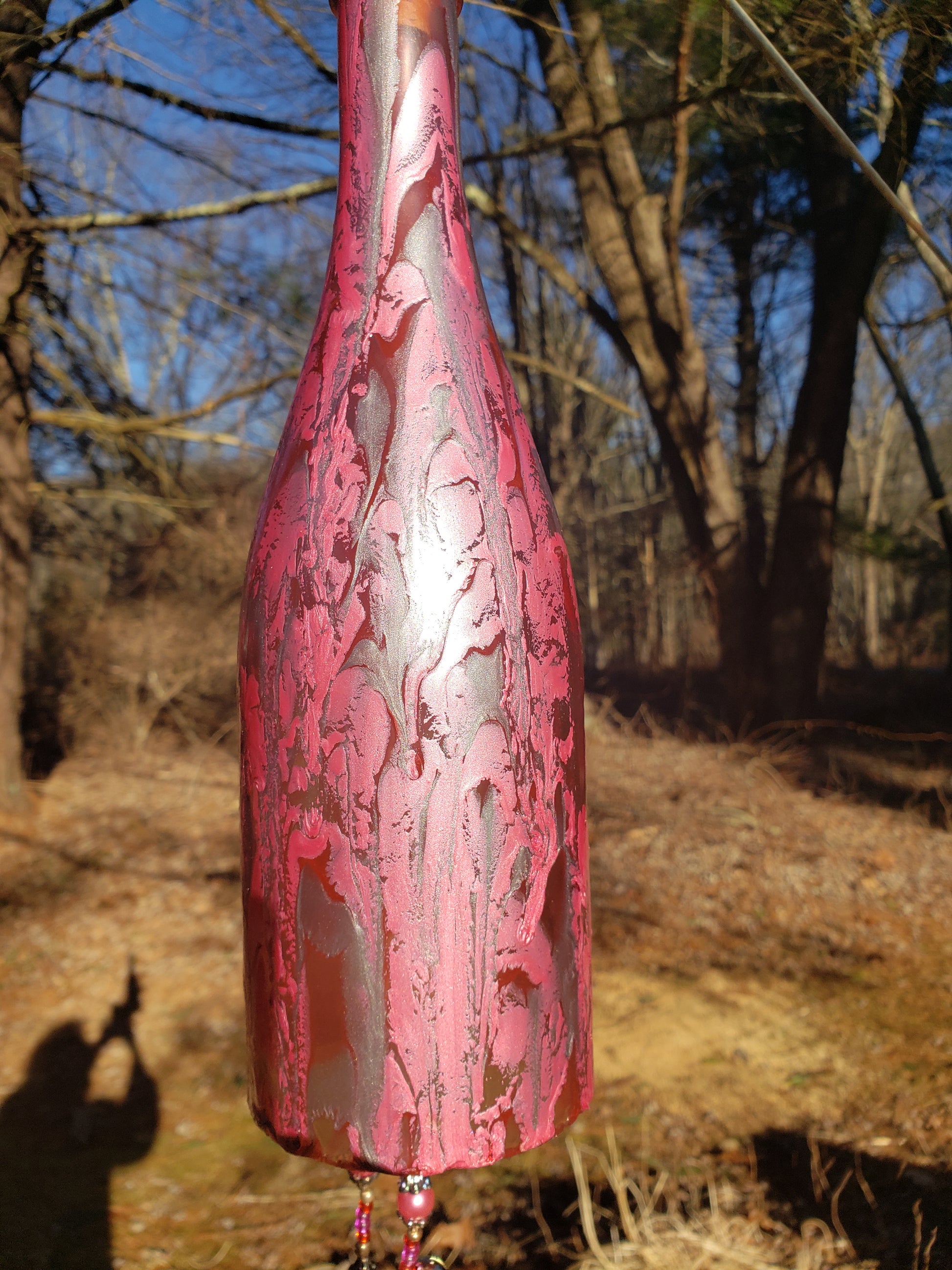 2 hand chimes made with love from scratch using recycled wine bottles and upcycled beads. Reduced price per item due to ordering 2 instead of a single.